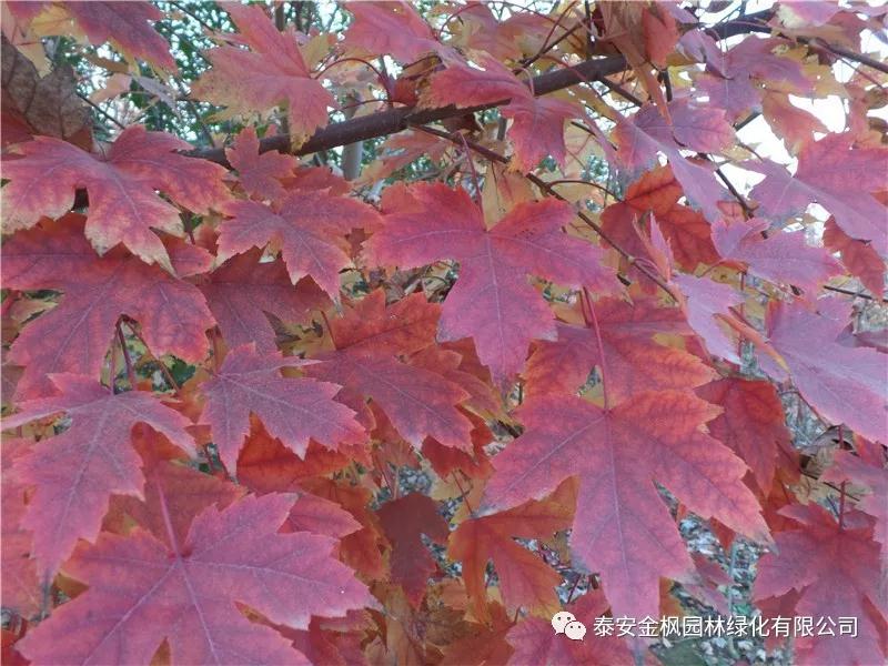 美國紅楓(學(xué)名:Acer rubrumL. ):原產(chǎn)于美國東海岸,主要來自于美國北部以及加拿大大部分地區(qū)。是落葉大喬木。生長較快,成年樹高12-18米,冠幅12米,能適應(yīng)多種范圍的土壤類型生長。春天開花,花紅色。因秋季色彩奪目,樹冠整潔,被廣泛應(yīng)用于公園、小區(qū)街道栽植,既可以園林造景又可以做行道樹,深受人們的喜愛,是近幾年引進的美化、綠化城市的理想珍稀樹種之一。也是唯一可以用作行道樹的彩葉樹種。