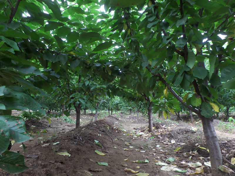 為了促使幼樹早結(jié)果,在整形的基礎(chǔ)上,對各類枝條的修剪程度要輕,以生長期的摘心為主.以控制枝梢旺長,增加分枝,加迅擴(kuò)大樹冠.冬季修剪時間應(yīng)推遲到萌芽前,以避免剪口失水干枯.除對主枝、延長枝短截和適當(dāng)間疏一些過密、交叉枝外,其余中、小枝要盡量保留.